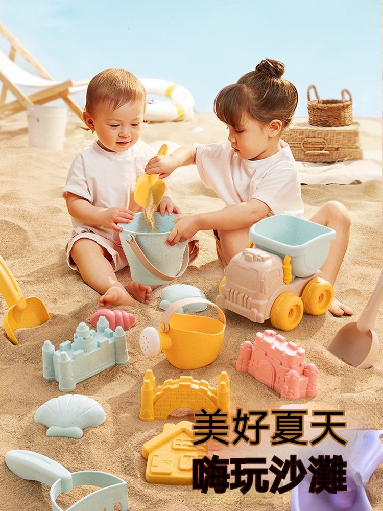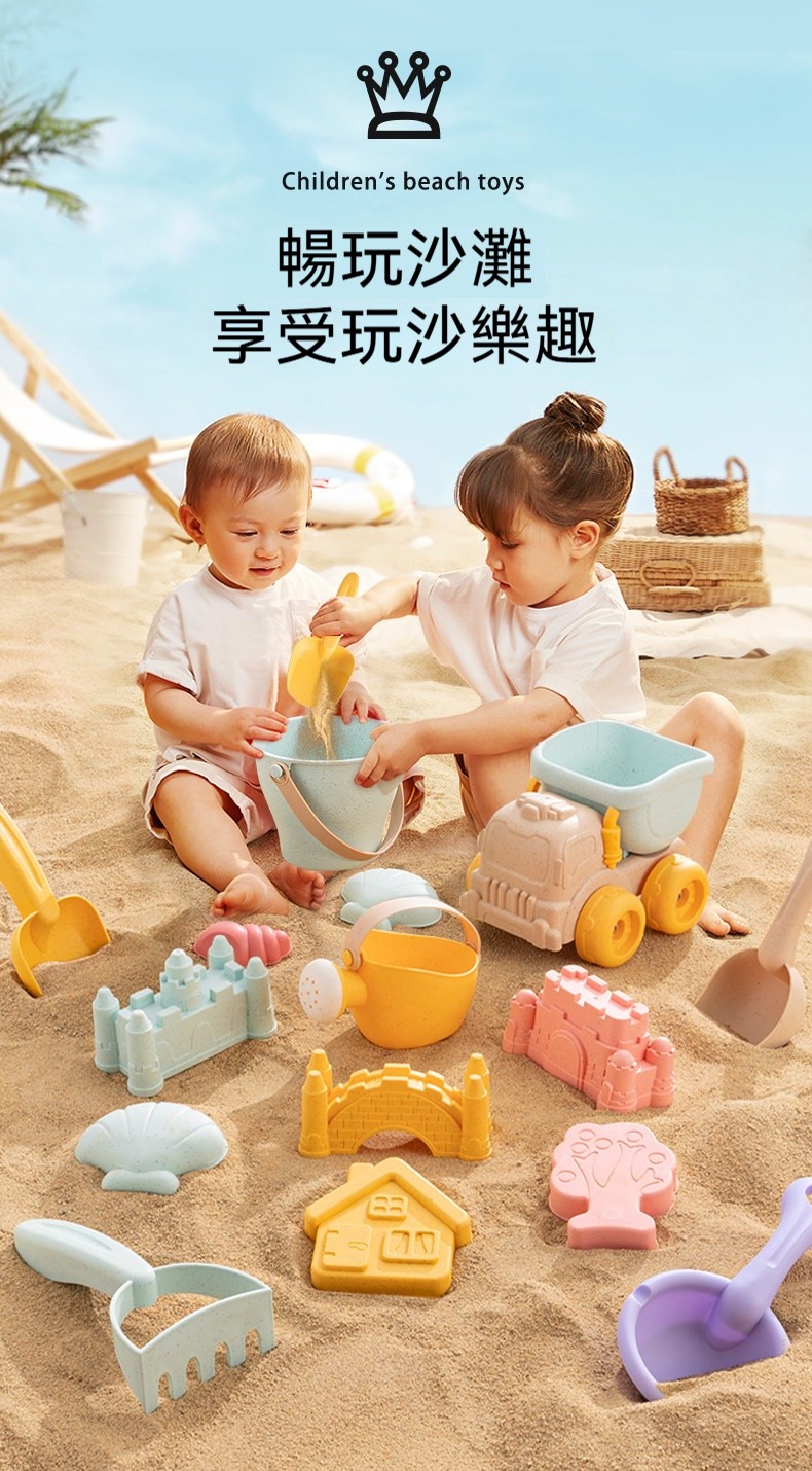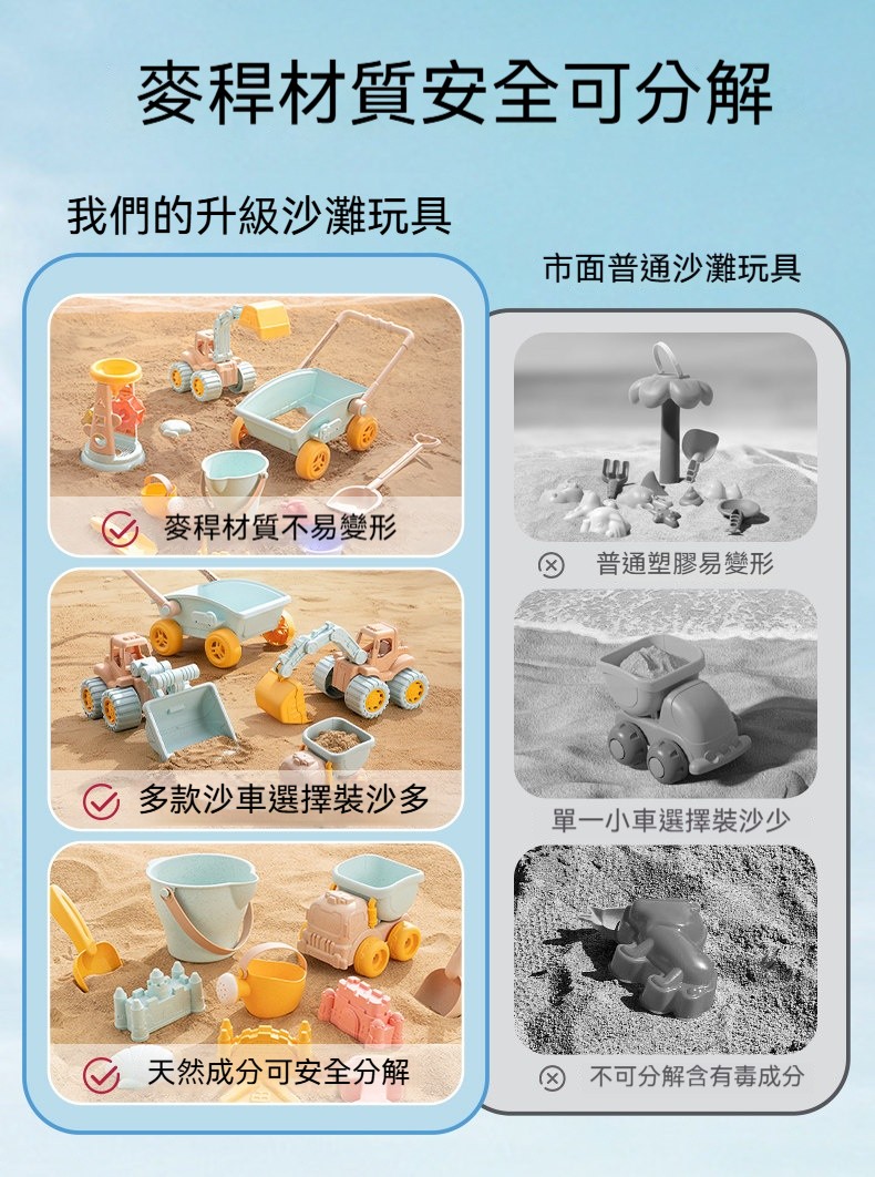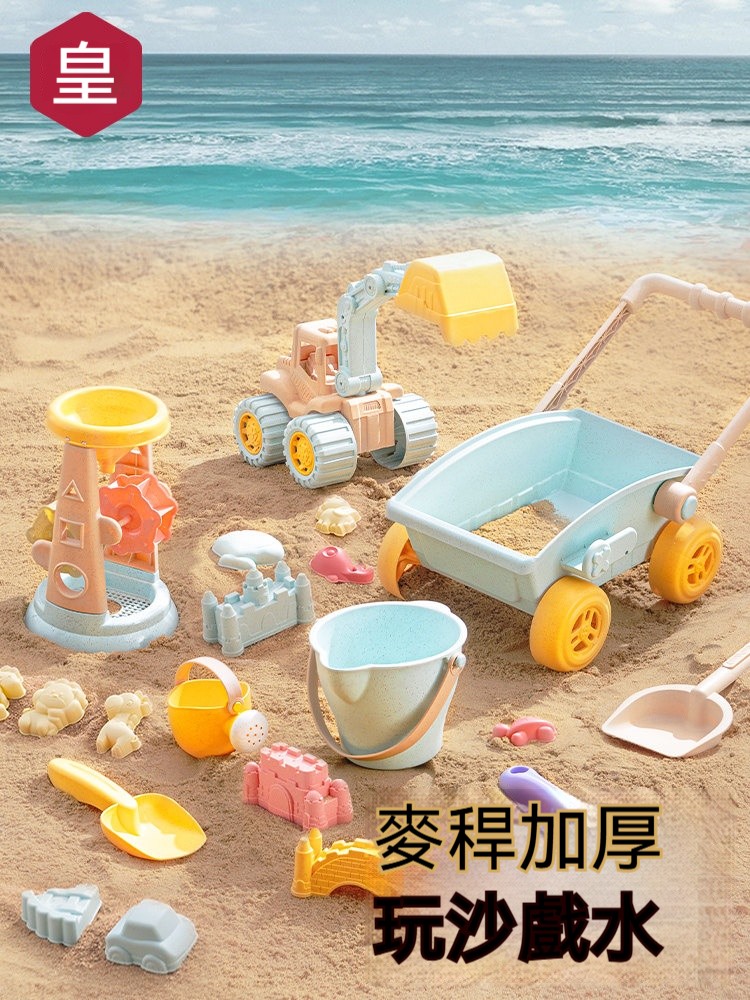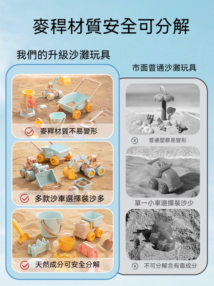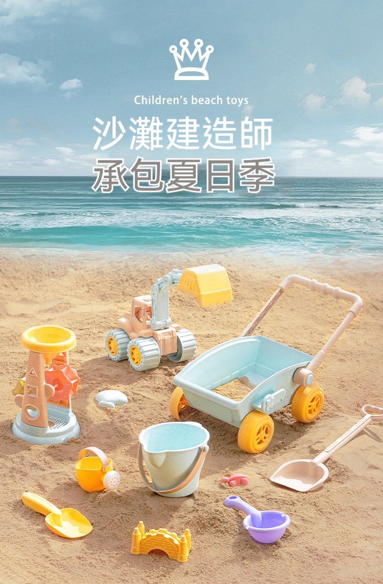 夏天必備放電神器!兒童沙灘玩具推車套裝✨安全小麥材質✨挖沙鏟+水桶+沙漏全配✨玩沙戲水一整天停不下來!