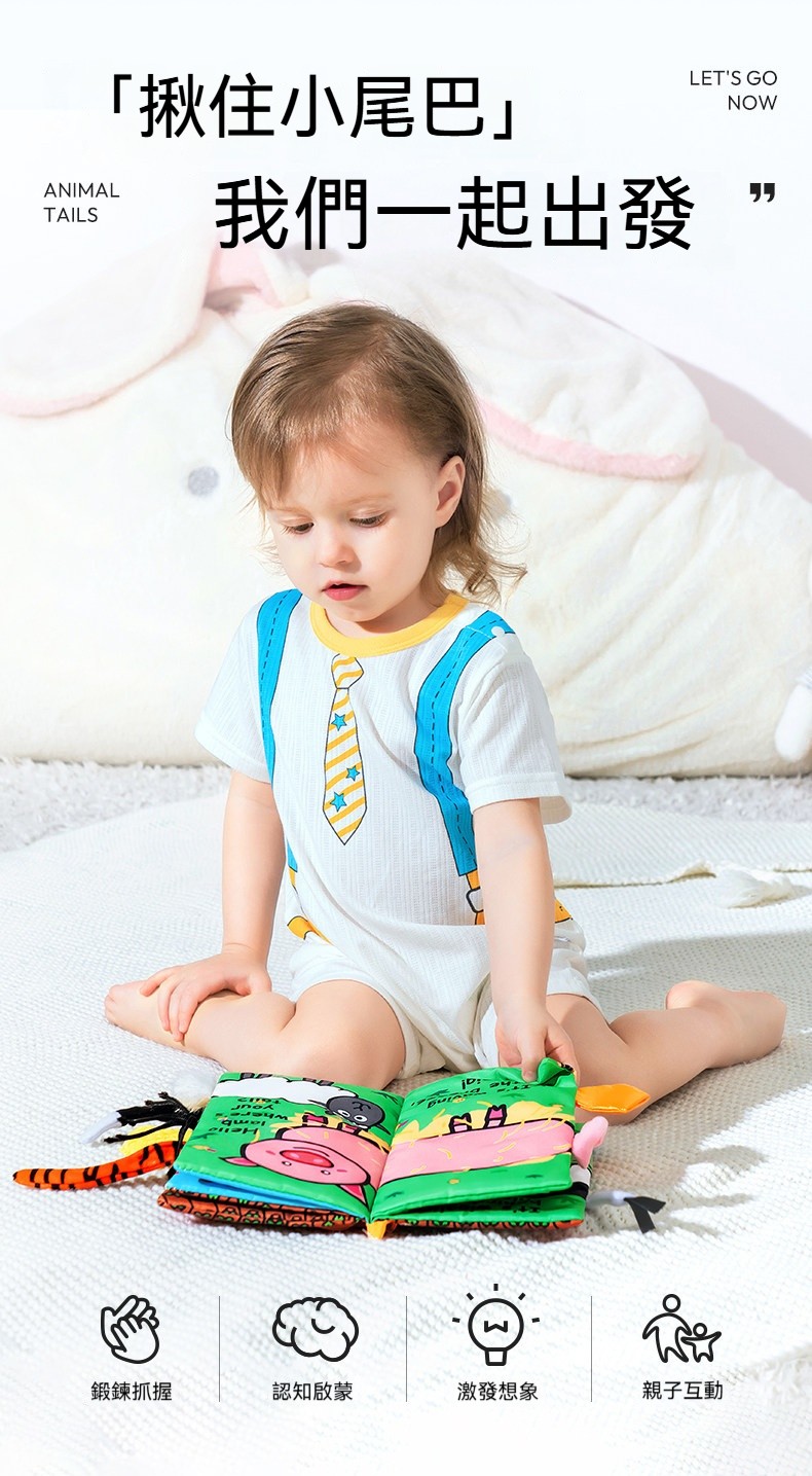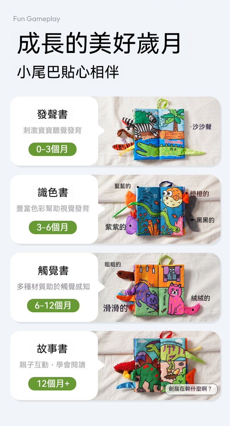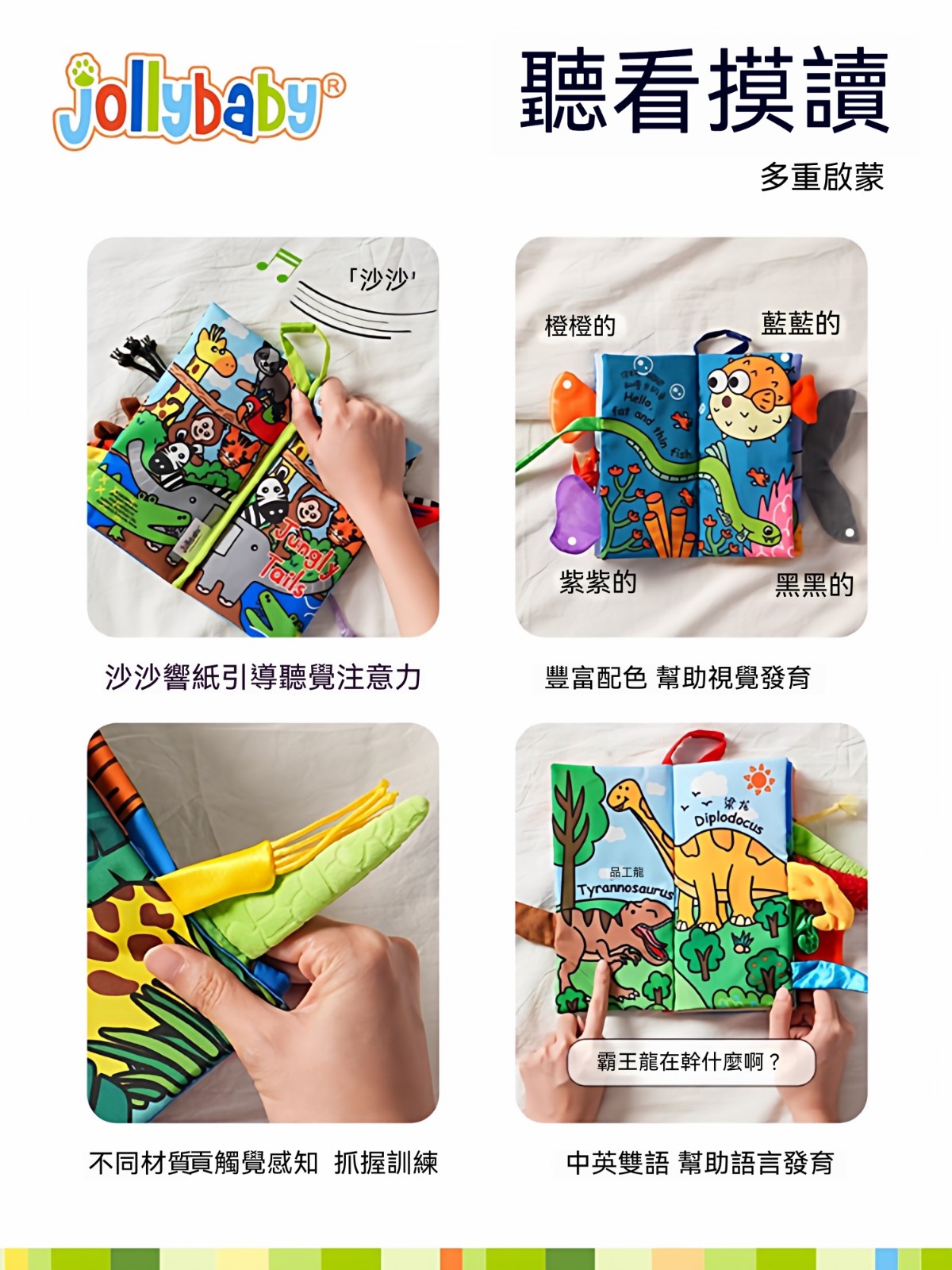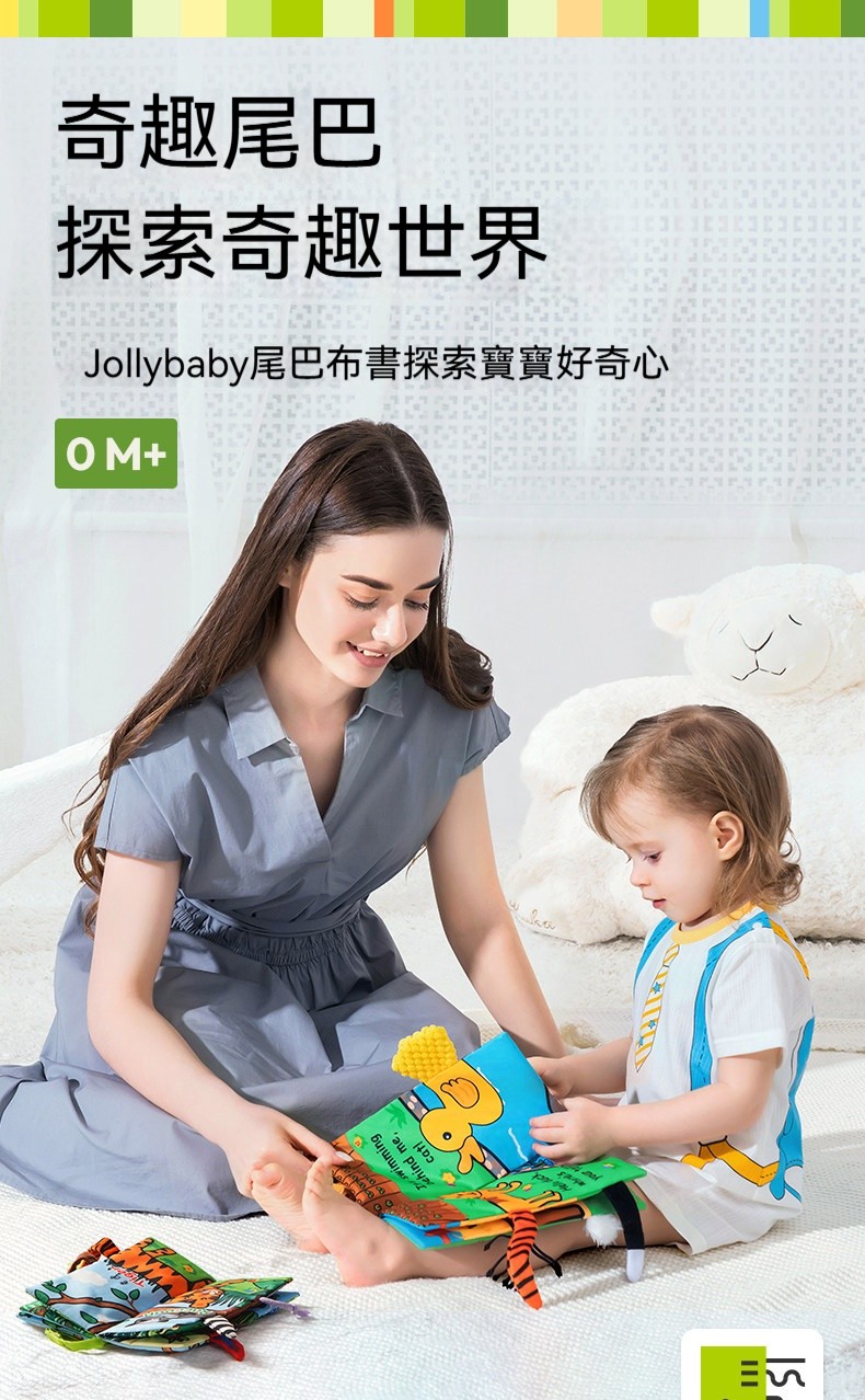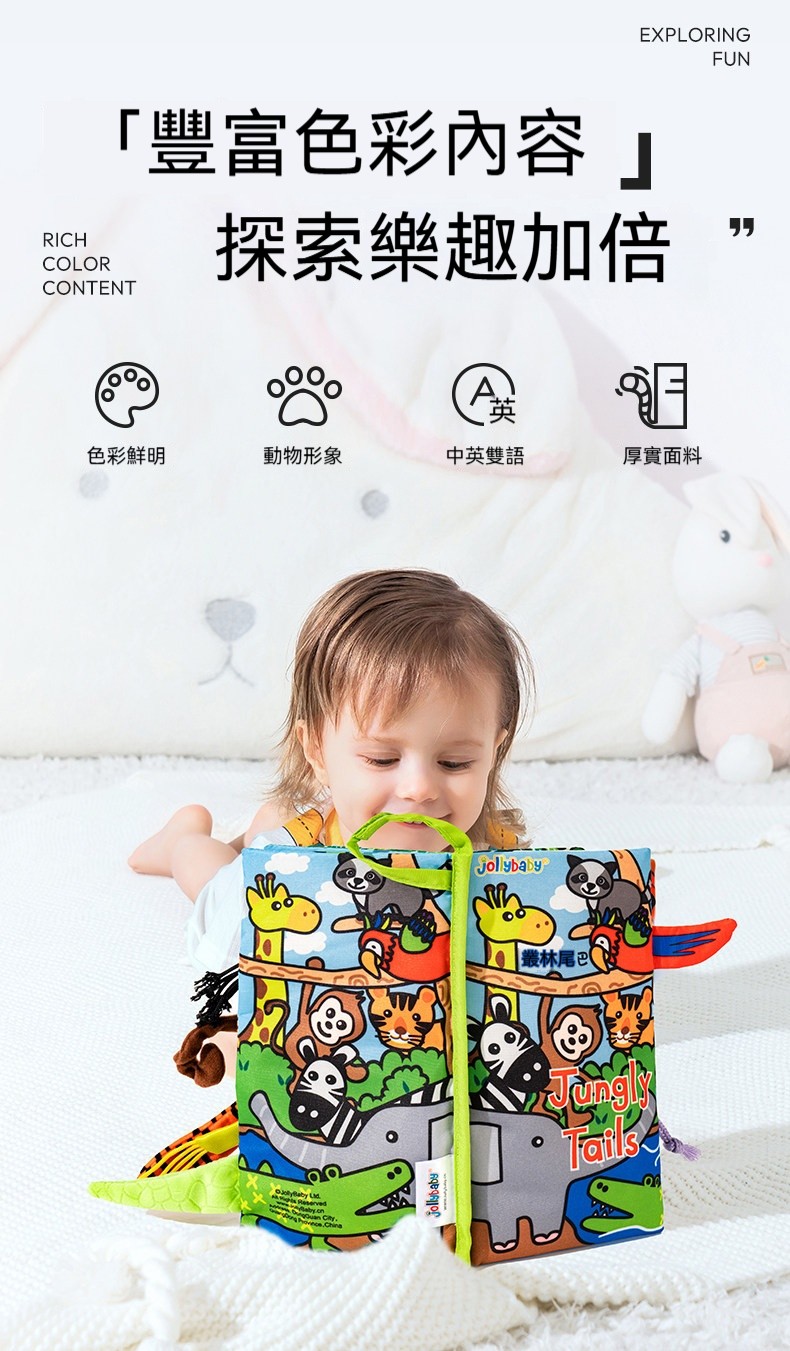 寶寶不哭不鬧神器!Jollybaby尾巴布書✨可撕不爛+可啃咬✨0-6個月感官啟蒙✨沙沙聲+鮮豔色彩刺激大腦發育✨媽媽圈爆推!